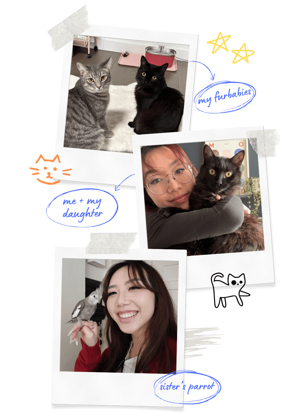 Outside of work, I'm a 🐈⬛ mom to three kitties, 🎮 a "no-life" gamer and maybe 📱doom scrolling on tiktok or reading crazy reddit stories. I also love collecting trinkets and being obsessive over what my latest hyper fixation is (right now it's journaling.)