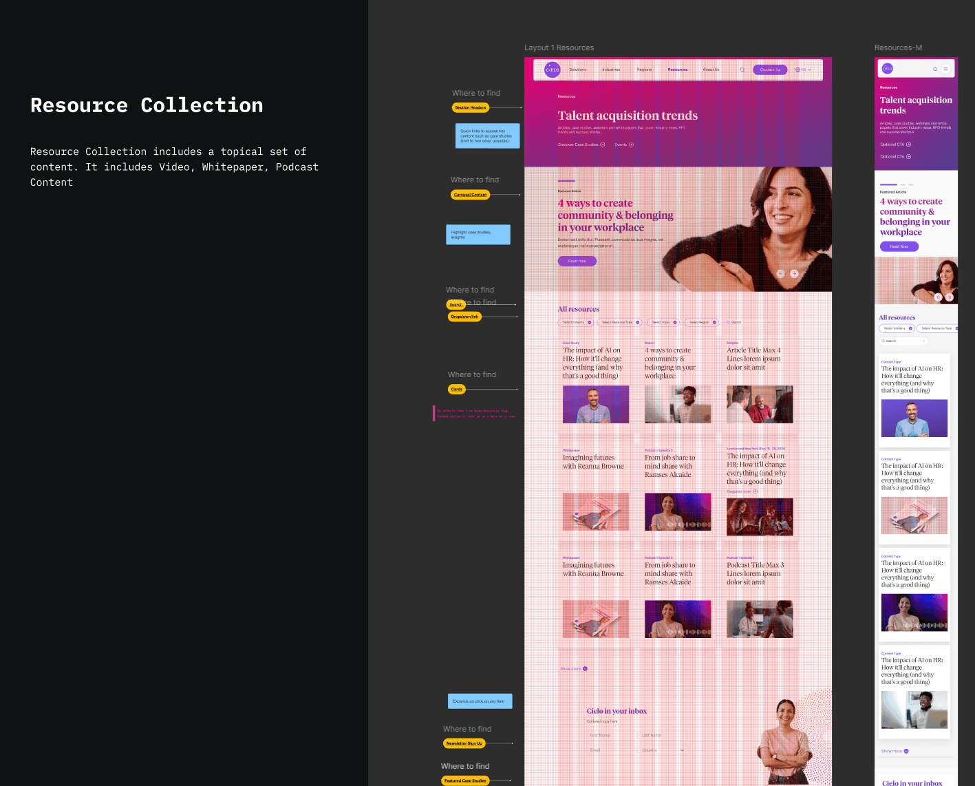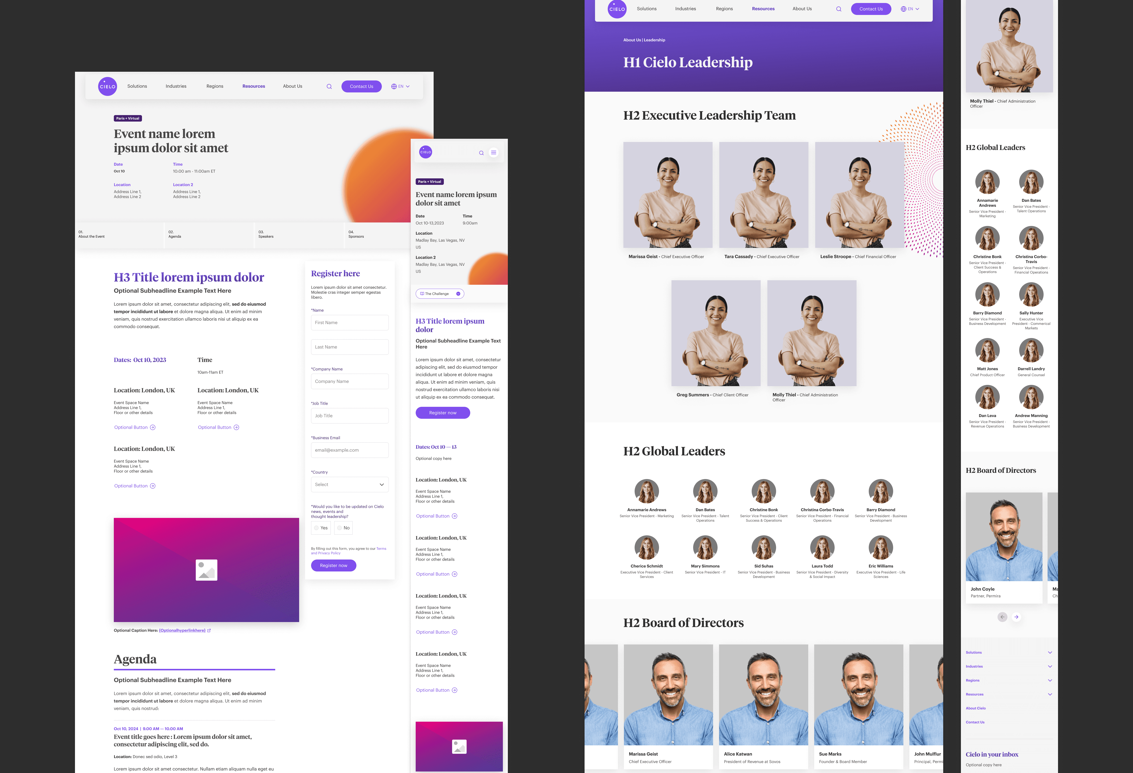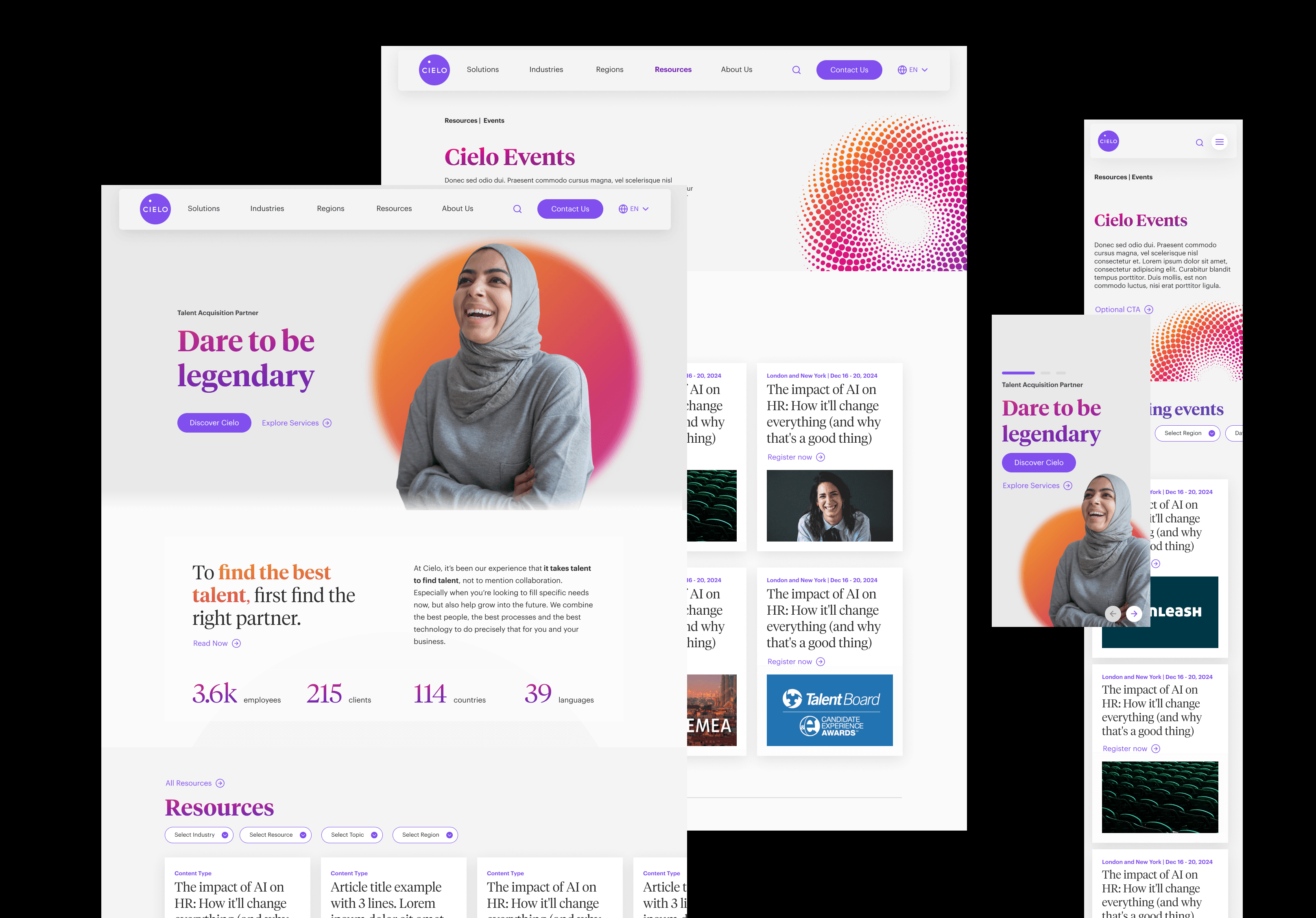 We built a comprehensive design system for Cielo Talent, featuring web typography, WCAG-compliant colors, layout grids, scalable modules, and a restructured navigation. Designed for modular reuse, the system ensures visual consistency and long-term sustainability across future pages for desktop and mobile. With over 30 page templates and hundreds of components, it provides Cielo Talent with the flexibility and scalability needed for ongoing growth.