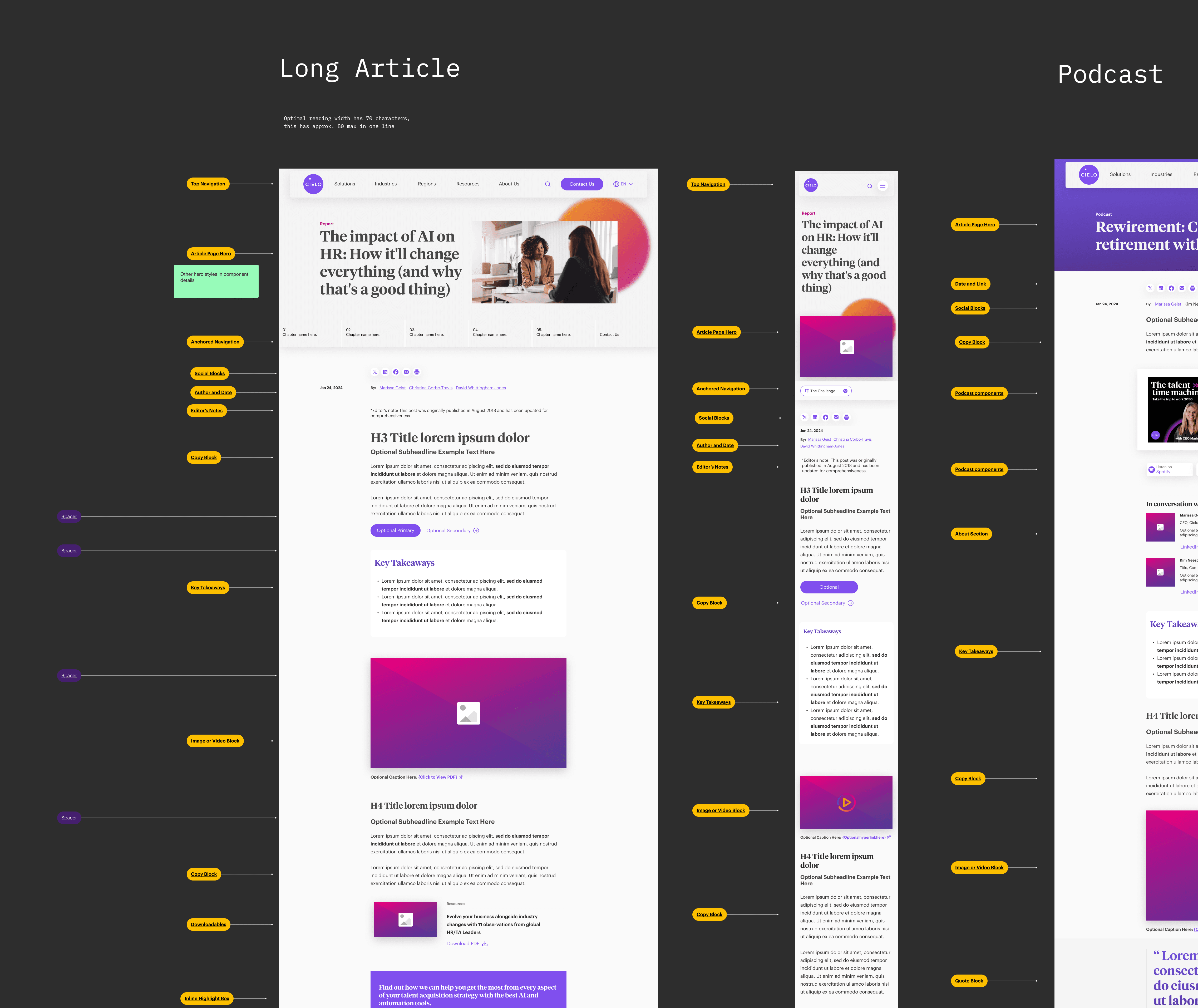 One of the key objectives Cielo Talent wanted to achieve with their new website was to integrate taxonomy into personalization, tailoring the user experience to individual journeys that help guide the user into quicker buyer processes. After extensive research, we identified two potential routes in the form of wireframes and UX flows outlining the visitor’s journey from their first visit to subsequent visits. This illustrates how the user experience evolves over multiple visits, providing a visual roadmap for implementing personalized features on the website.