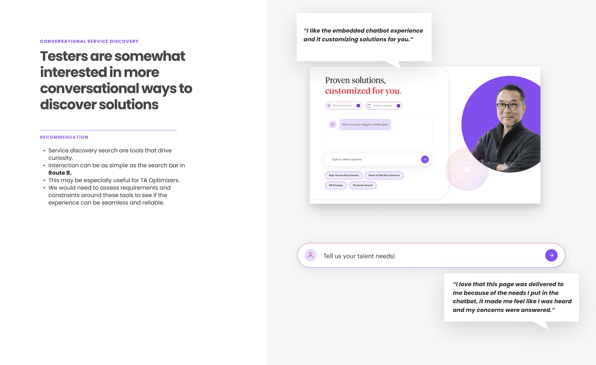 Route B introduces controlled friction to encourage more self-selection, allowing us to gather more detailed information about the user to personalize future visits.